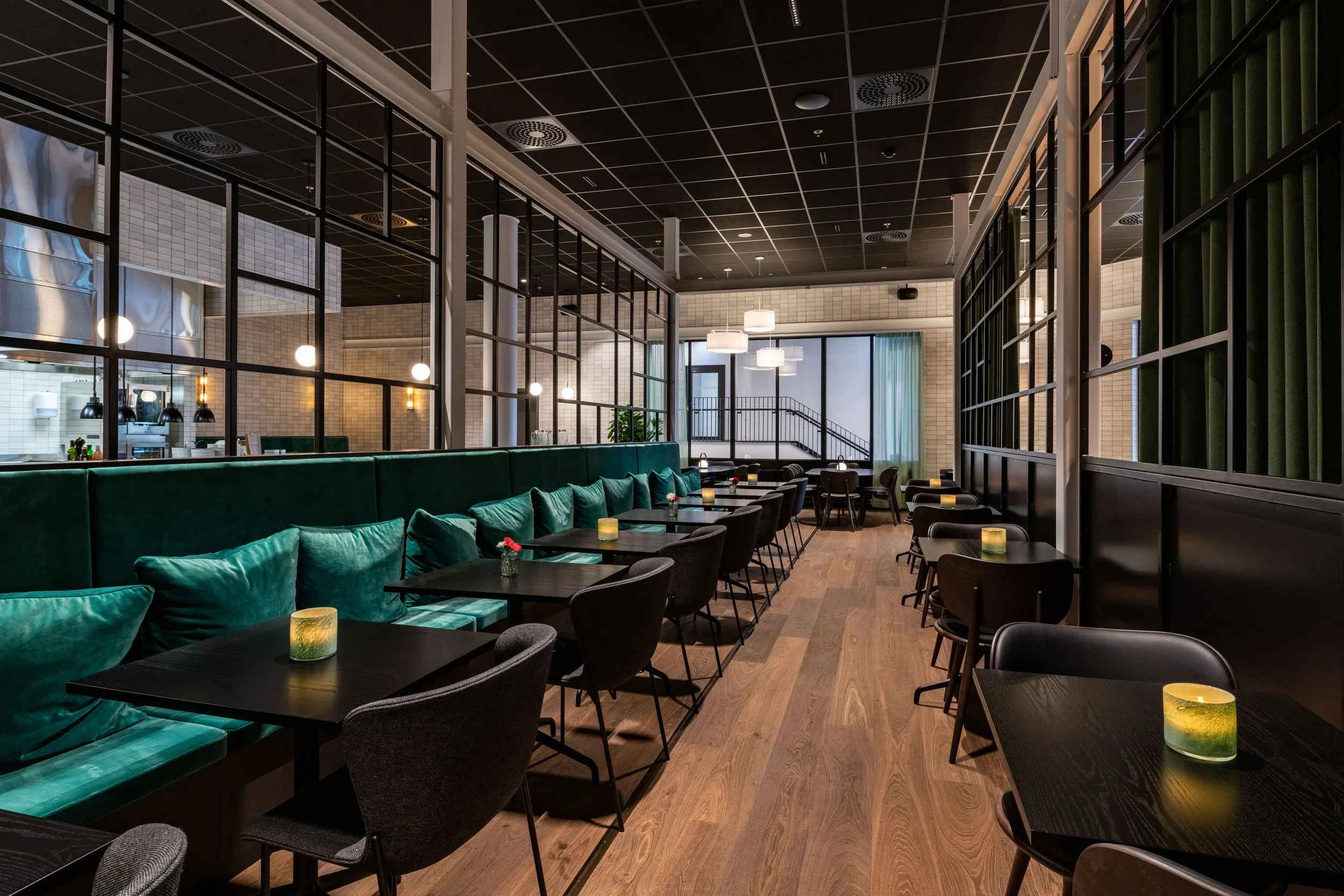 Her får du et selskapslokale delt inn i hyggelige avdelinger som gjør det lett å skape den rette stemningen. Interiøret har rene linjer og et moderne, maskulint preg – stilrent, fleksibelt og med en atmosfære som løfter både små og store sammenkomster.